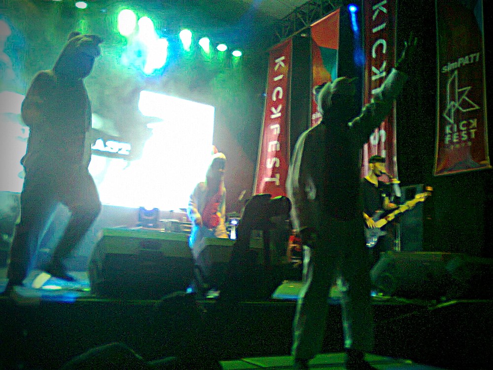 This band is almost always there in Kickfest annually. Some of their song's chords were presented in this blog and became popular posts. As usual, the lead vocalist, Yas Budaya, was such an attention gatherer. He looked better without his moustache and lost some weight apparently the last time I saw Alone at Last* performer pre-disband rumor. Yas put up a variety of acts while singing "Rise", "Saat Dunia Tak Menatapmu", "Takkan Terhenti di Sini", "Kita Bisa" and "Amarah Senyum dan Air Mata". There was a new guitarist introduced who replaced Papsky. Some bunny dudes appeared on the stage out of nowhere. This performance was full of surprise. The closure was kind of flat though. It's late already anyway.